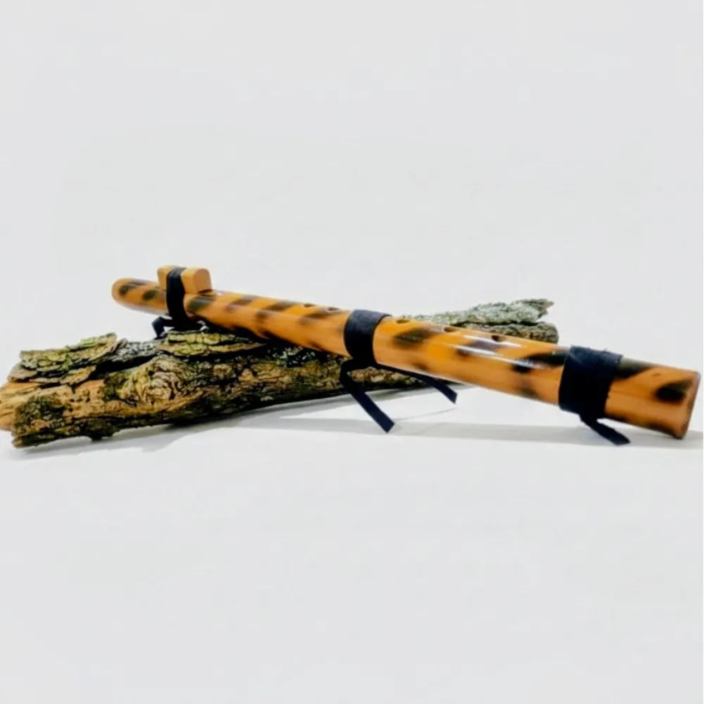 Handcrafted from treated South American bamboo, the flute features an artistic flame-finish style, where fire becomes a mark of transformation and individuality.